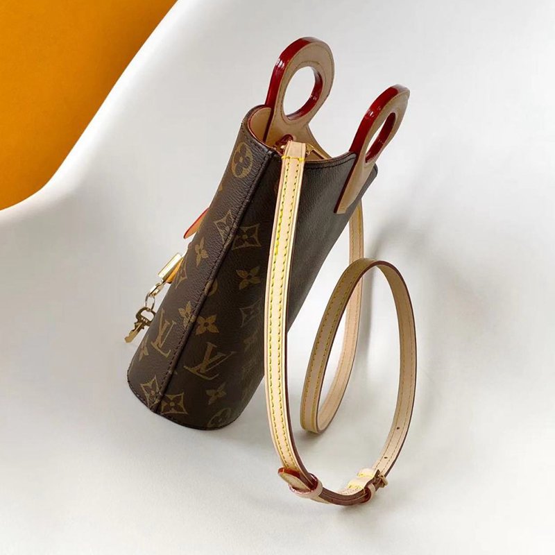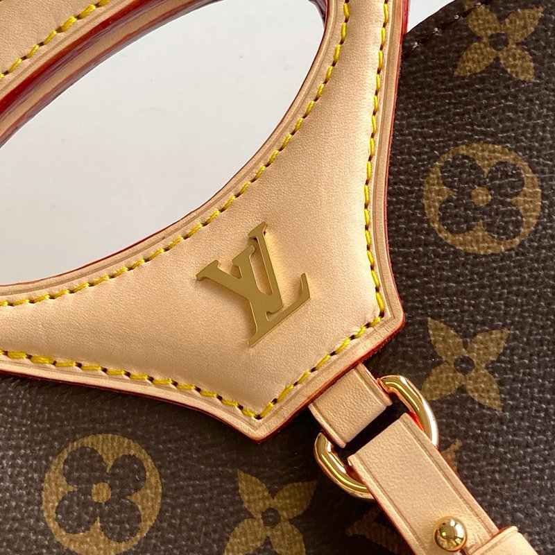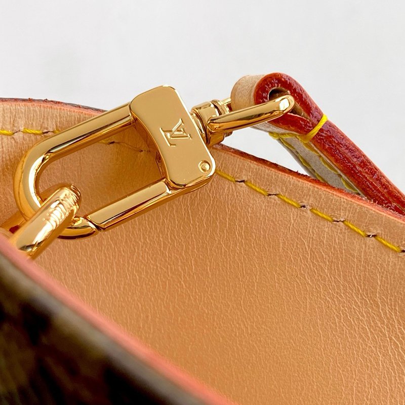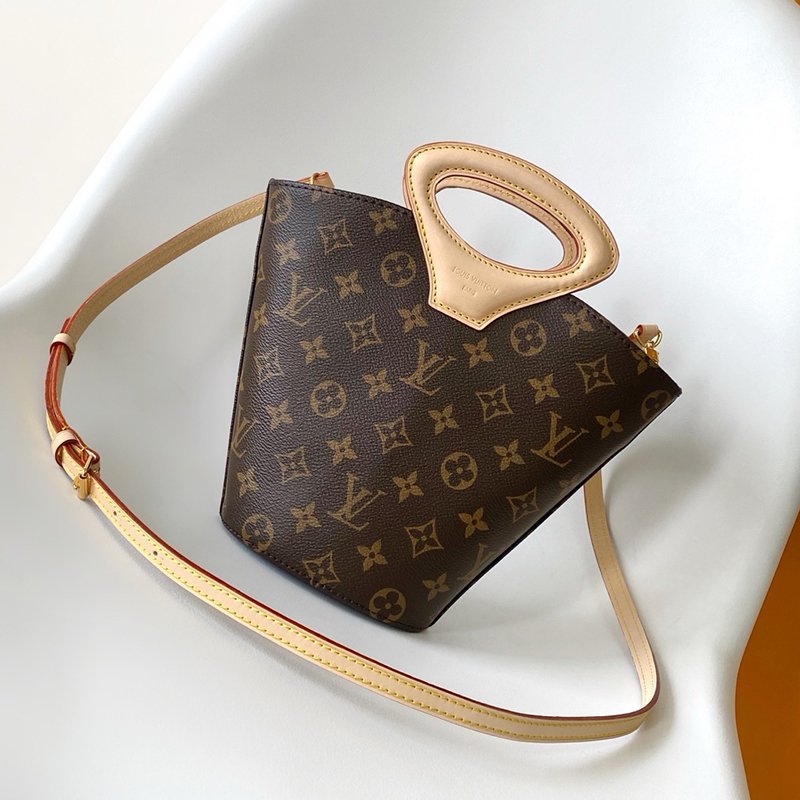 M14680 Top Original Dynamic 163 Nicolas Ghesqui è re presents Rivage BB handbag at the 2025 Spring/Summer fashion show, with Monogram canvas cut into a bucket shape, reinterpreting Louis Vuitton’s Noctambile handbag launched in 1999. The hard box style handle, LV engraved padlock, and leather luggage tag showcase classic elements, and can be conveniently slung over a shoulder strap. 12.0 x 18.0 x 7.0 centimeters (length x height x width)