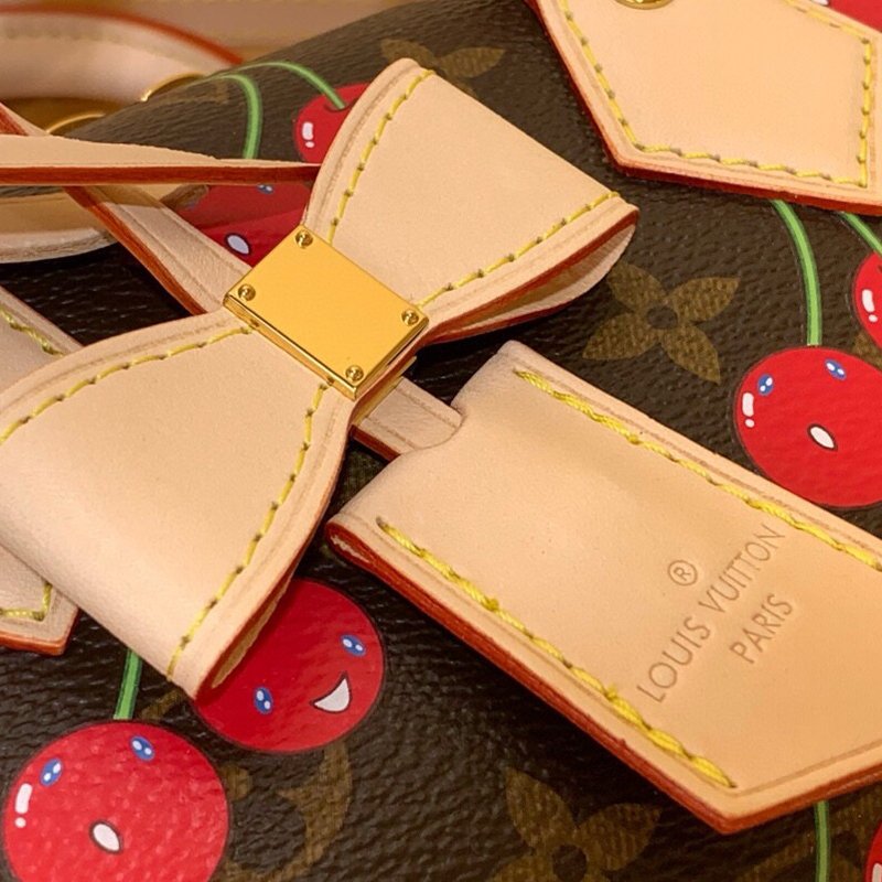 The vibrant signature reprinted from the Louis Vuitton x Murakami collection enhances the Speedy Bandouli è re QLH with a unique twist, while the sweet cherry pattern elevates the iconic Monogram coated canvas of the house with joyful colors. Natural leather highlights the Toron top handle, detachable strap, and exclusive LV x TM keychain. It is made in jewelry proportions and can carry daily necessities, including smartphones and long wallets.
